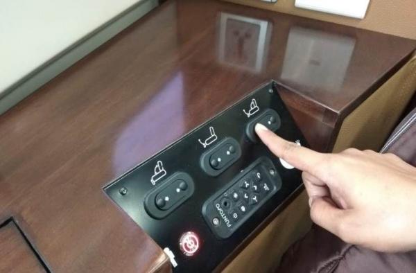 Tombol elektrik untuk mengatur tingkat kemiringan kursi untuk tidur dalam gerbong sleeper train.