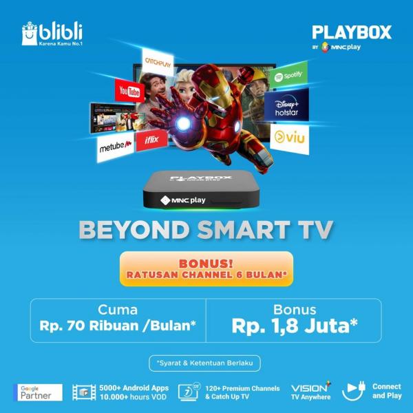 JAKARTA, iNews.id - Android TV by MNC Play, Playbox kini bisa didapatkan di Blibli.com dengan harga yang terjangkau. Pengguna dapat menggunakan skema cicilan, mulai dari tiga bulan serta berhak mendapatkan berbagai bonus pilihan yang menarik.