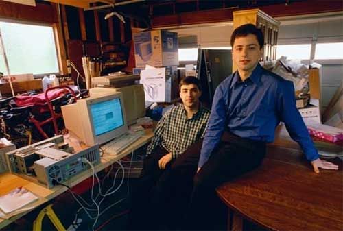 Larry Page dan Sergen Brin merintis usahanya pada sebuah garasi di Menlo Park California tahun 1998. Dia memulainya dengan tiga orang staf. Mereka merancang algoritma dan terus memperbaikinya hingga menjadi mesin pencari internet utama yang digunakan banyak orang. Google kini juga memiliki banyak unit bisnis di bidang teknologi.
