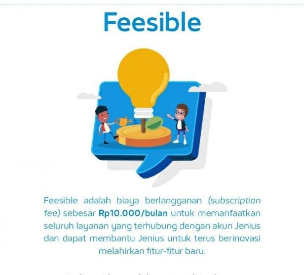 "Jika saldo aktif kamu kosong atau kurang dari Rp10.000, maka Feesible di bulan tersebut akan ditagihkan kembali secara berkala," tulisnya.