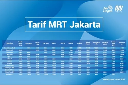 Mengutip keterangan resmi MRT, Jakarta, Minggu (11/5/2019), tarif normal ini sesuai dengan Peraturan Gubernur Provinsi DKI Nomor 34 Tahun 2019 tentang Tarif Angkutan Perkeretaapian Mass Rapid Transit dan Kereta Api Ringan/Light Rail Transit.