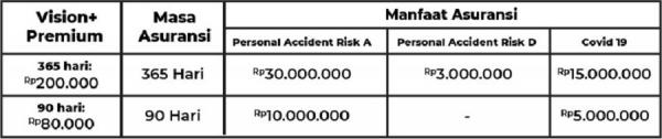 Dengan membeli paket Vision+ Premium, manfaat pertanggungan yang akan didapatkan pengguna adalah sebagai berikut:
