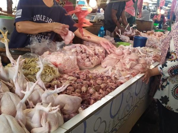 Harga daging ayam stabil tinggi di pasar tradisional. (Foto: iNews.id/Ilma De Sabrini)