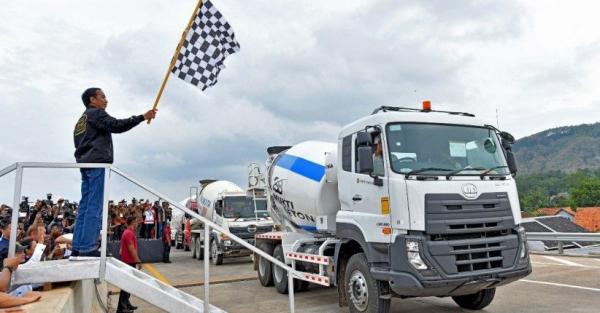 Usai peresmian, orang nomor satu di Indonesia itu bersama rombongan menuju lokasi peresmian kedua di Jembatan Kali Kuto melewati Tol Trans Jawa menggunakan bus.