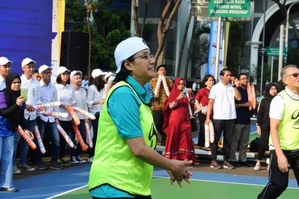 Semarakkan Hari Oeang ke-73, Begini Gaya Sri Mulyani Tanding Bola Voli