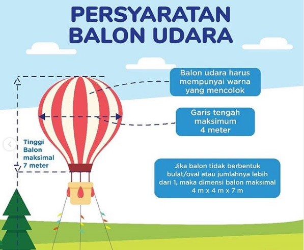 Mengacu pada peraturan tersebut, ukuran balon maksimal berdiameter 4 meter dan tinggi 7 meter, warna harus mencolok. Jika balon tidak berbentuk bulat atau oval atau jumlahnya lebih dari satu, dimensi balon maksimal 4 meter x 4 meter x 7 meter.