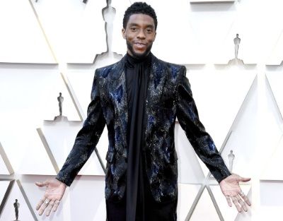 Selain gaun-gaun cantik para aktris, aktor Black Panther ini tampil tak kalah glamor. Lihat saja paduan yang diperlihatkan Chadwick Boseman, dia mengenakan tuksedo hitam-biru metalik dengan kemeja hitam dan dasi oversize, membuatnya tampil bak di era Victoria.