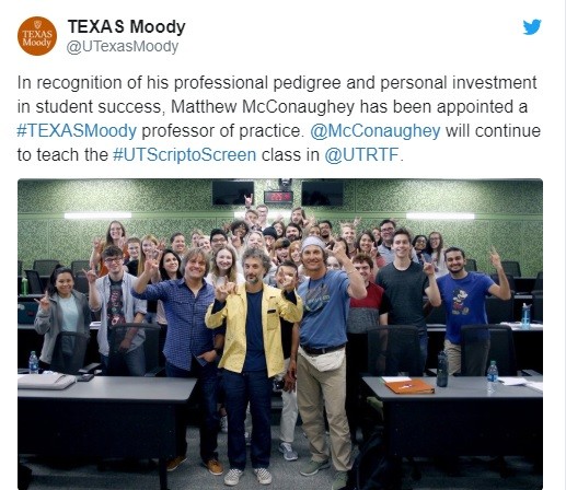 Dekan Moody College, Jay Bernhardt, menyambut baik kehadiran Matthew. Dia menilai alumnus Universitas Texas itu sangat peduli dengan kampus.