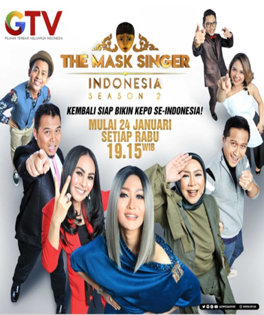 Setelah sukses dengan season pertama, The Mask Singer Indonesia season 2 siap kembali menghibur layar kaca pemirsa dirumah. The Mask Singer Indonesia yang diadaptasi dari program King of Mask Singer asal Korea Selatan ini akan  kembali menghibur dan membuat pemirsa penasaran siapa saja para kontestan yang akan berada di balik topeng dan kostum seru yang unik serta menunjukkan kebolehannya bernyanyi. Di season ke-2 ini tentunya The Mask Singer Indonesia akan hadir lebih heboh karena deretan para panelis pun berbeda dari sebelumnya. Di season ini Kartika Putri, Melly Goeslaw, Arie Untung, Denny, Budi Doremi dan Tiwi akan bertindak sebagai panelis bersama sang host-nya John Martin. Saksikan mulai 24 Januari 2018, setiap Rabu, pukul 19.15 WIB.