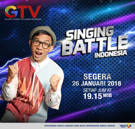 Hanya di game show terbaru pesembahan GTV ini pemirsa bisa mengadu skill bernyanyi melawan para selebriti. Kompetisi bernyanyi bertajuk Singing Battle Indonesia ini merupakan adaptasi dari sebuah program Singing Battle yang berasal dari Korea Selatan. Di mana selebriti, produser musik, dan non-selebriti akan menjadi satu tim, dan masing-masing tim akan adu nyanyi satu lawan satu. Pengeliminasiannya cukup unik, yaitu peserta tereliminasi akan dijatuhkan dari panggung. Pemenang setiap babak ditentukan oleh juri vote lock. Nantinya hanya ada satu tim pemenang di setiap episode-nya. Nantikan mulai 26 Januari, setiap Jumat pukul 19.15 WIB.