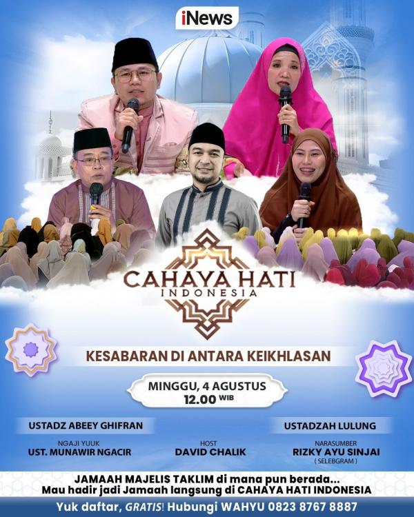 Jangan Lewatkan Cahaya Hati Indonesia Siang Ini bersama Ustadz Abeey, Ustadzah Lulung dan Narasumber Rizky Ayu Sinjai Hanya di iNews