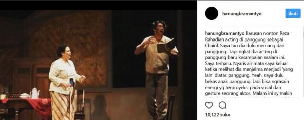 Hanung Bramantyo sebagai salah satu sutradara ternama di Tanah Air, menilai Reza Rahadian sebagai sosok aktor. Hal ini diungkapkannya lewat posting-annya di akun Instagram pribadi, usai dirinya melihat akting Reza Rahadian di pertunjukan teater “Perempuan Perempuan Chairil.”