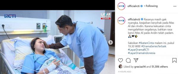 JAKARTA, iNews.id - Sinetron Ikatan Cinta malam nanti tampaknya akan mengharu biru, setelah Andin (Amanda Manopo) sadar dari koma karena menenggak racun. Hal itu tampak dalam video teaser yang diunggah di Instagram @officialrcti, Minggu (3/1/2021).