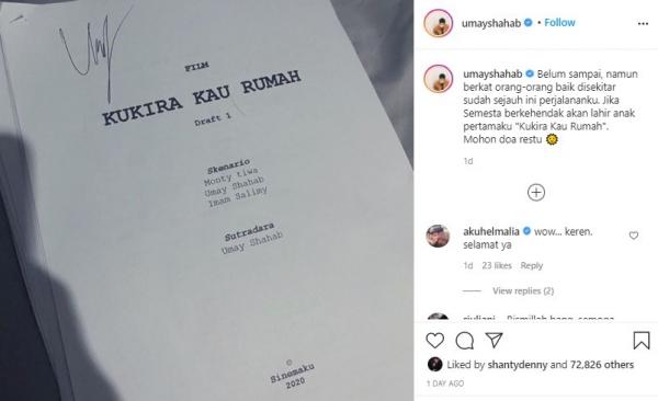 “Belum sampai, namun berkat orang-orang baik disekitar sudah sejauh ini perjalananku. Jika Semesta berkehendak akan lahir anak pertamaku ‘Kukira Kau Rumah’,” tulis Umay seperti dikutip dari Instagramnya, Senin (10/8/2020).