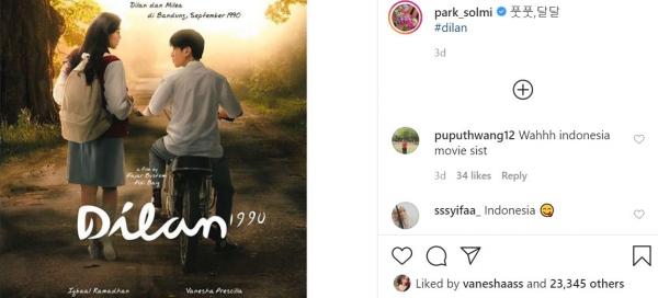 Viral, Aktris Korea Park Sol Mi Unggah Poster Film Dilan 1990