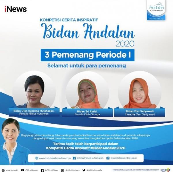 Dalam kompetisi ini, para peserta membagikan cerita menarik bersama bidan inspiratif yang telah memberikan kontribusi positif kepada masyarakat atau lingkungan. Setelah dewan juri menimbang, akhirnya terpilih para pemenang dari kategori penulis dan bidan Andalan Inspiratif 2020 untuk periode pertama yakni: