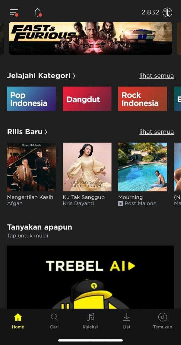 sekali. Bagian paling penting adalah semua lagu di aplikasi TREBEL bukan bajakan tapi musik