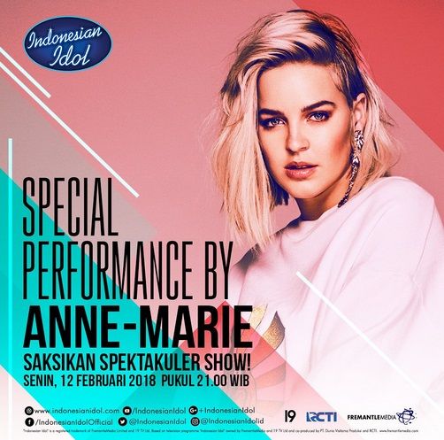 “Jangan lewatkan Spektakuler Show Top 10, akan ada Spesial Performance dari Anne Marie! Senin, 12 Februari 2018 pukul 21.00 WIB ,” kicau akun resmi Indonesian Idol.
