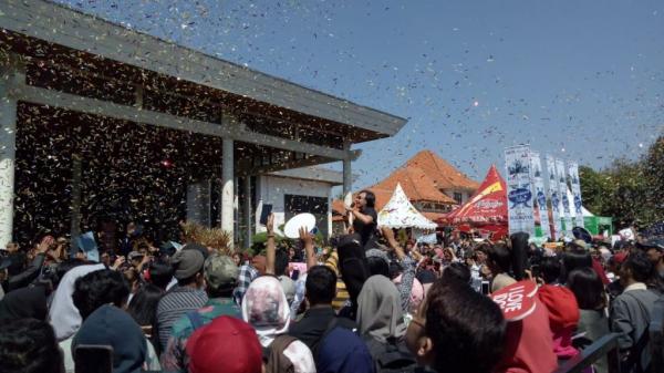 "Selamat pagi Suroboyo!" teriak Ari Lasso disambut lambaian tangan ribuan peserta yang memenuhi halaman gedung BK3S Convention Center.