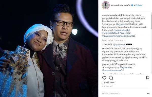 Tak hanya itu saja, dukungan mengalir dari juri Indonesian Idol 2018, Armand Maulana. Armand juga mengunggah foto di Instagram sebagai bentuk dukungan kepada Ayu.