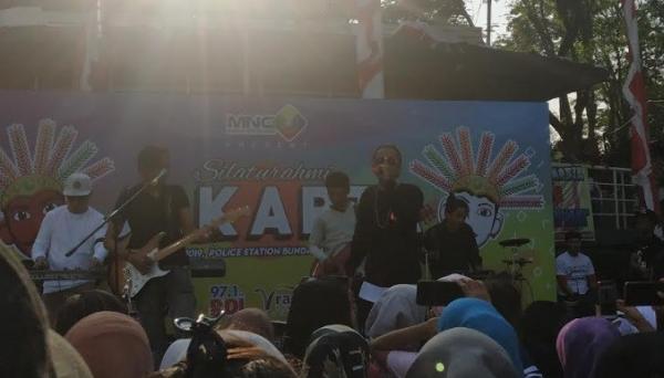 JAKARTA, iNews.id - Deretan musisi dan artis Tanah Air sukses meramaikan perhelatan 'Silaturahmi Jakarta' yang diadakan oleh MNC Radio Networks di Car Free Day (CFD), Bundaran HI, Jakarta Pusat, Minggu (30/6/2019). Selain Sandy Canester, Yuka Tamada, Dinda Permata, Wahyu Selow, Anov, Ovy Sovianty, ada Dera, Element Reunion, dan Cakra Metro Band.
