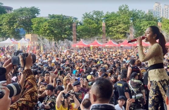 Dengan gaya yang khas dan ramah, Sibad pun menyapa para penonton. Mereka pun membalas sapaan peraih Artis Solo Dangdut Terbaik ini dengan kompak dan membuat suasana acara festival Budaya Nusantara 2018 semakin ramai.