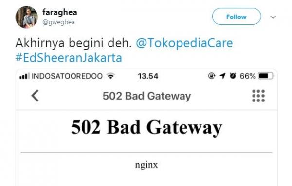 "what happened to you @tokopedia @TokopediaCare server langsung down diserbu fans #edsheeranjakarta," tulis @shizka.