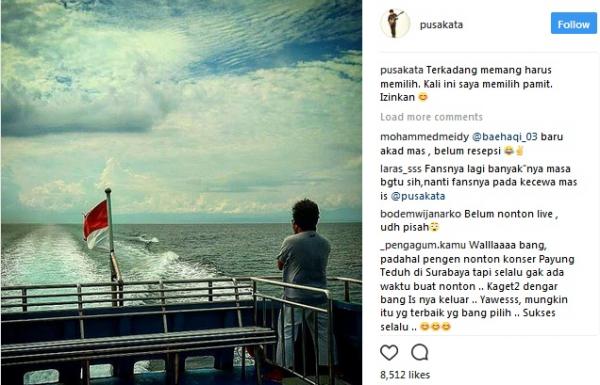 "Terkadang memang harus memilih. Kali ini saya memilih pamit. Izinkan," tulisnya dalam keterangan fotonya.