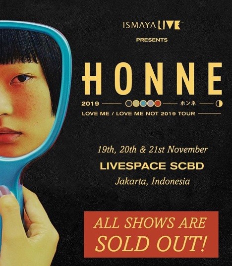 "All shows for #HONNEJKT are SOLD OUT! See you for Day 1, Day 2 and/or Day 3 of @hellohonne’s first ever solo concert in Indonesia!" seperti dikutip dari Instagram Ismaya Live.