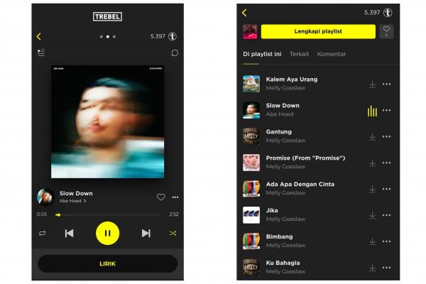 Ingin mengoleksi lagu terbaru dari Abe Hoed “Slow Down” dan ”Aya Urang” dari Melly Goeslaw dengan GRATIS & LEGAL? Download aplikasi musik TREBEL di App Store/Play Store, lalu download lagunya dengan GRATIS, dan dengarkan secara OFFLINE kapanpun kamu mau!