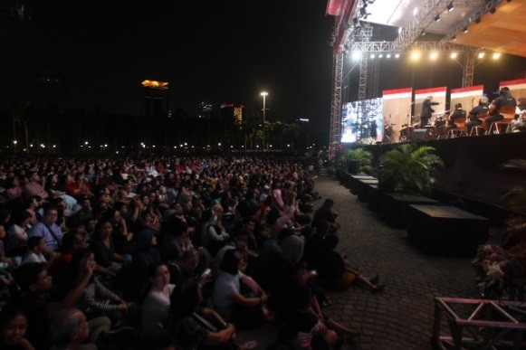 "Malam hari ini, berdasarkan informasi dari UPT di Monas, telah berkumpul 13.109 pengunjung. Insya Allah, ini adalah rekor konser musik klasik di Indonesia," kata Anies Baswedan dalam kesempatan yang sama.