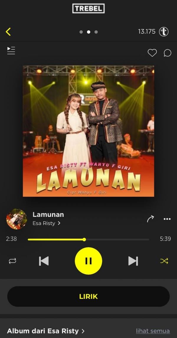 Lagu “Lamunan” di aplikasi TREBEL Musik yang siap didownload gratis dan didengarkan secara tanpa internet