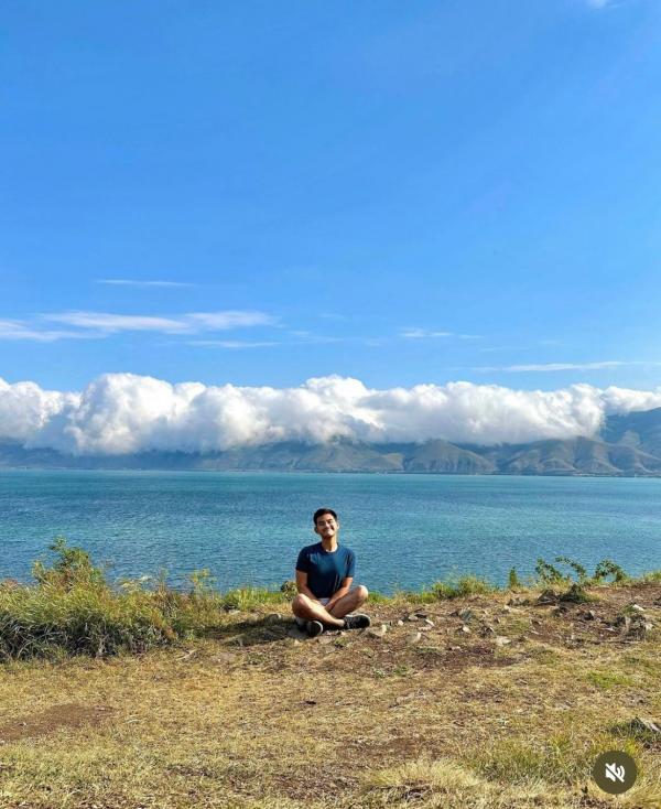 Selain gemar jalan-jalan, Adriel Tjokro juga kerap kali membagikan momennya ketika sedang menjelajahi keindahan alam di berbagai negara dunia. Dalam foto ini, Adriel Tjokro sedang duduk di hamparan rumput dengan pemandangan danau dan awan yang indah di belakangnya.