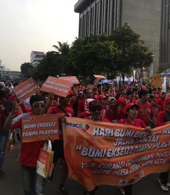 JAKARTA, iNews.id - Demi memperingati Hari Bumi yang jatuh pada April ini, Radio Dangdut Indonesia (RDI) turut mengkampanyekan peduli lingkungan dengan mengurangi penggunaan bahan plastik di kehidupan sehari-hari. Hari puncak peringatan Hari Bumi ini, RDI melakukan jalan santai bertema 'Bumi Ekseizz Tanpa Plastik' di Car Free Day (CFD), Jakarta, Minggu (28/4/2019).