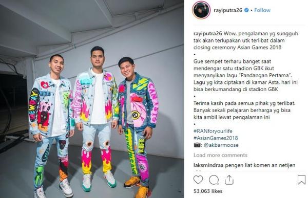 "Wow, pengalaman yg sungguh tak akan terlupakan utk terlibat dalam closing ceremony Asian Games 2018," tulis Rayi, dikutip melalui keterangan foto di Instagram miliknya, Senin (3/9/2018).
