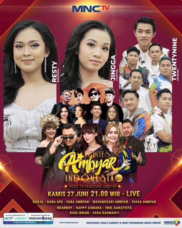 MNCTV menayangkan secara langsung Top 3 Kontes Ambyar Indonesia 2024 Road To Panggung Ambyar pada Kamis, 27 Juni 2024, pukul 21.00 WIB.