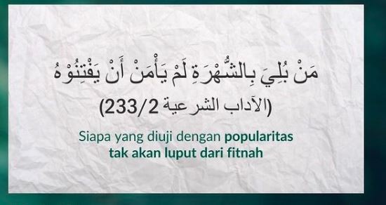 10. Popularitas itu sangat rentan dengan fitnah. Maka, Barangsiapa yang diuji dengan popularitas, maka hati-hati dan bersabarlah.