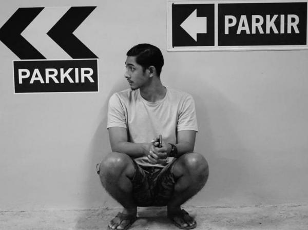 Selanjutnya ada potret lawas Arya yang memperlihatkan gaya santai berjongkok di tempat parkir. Dalam foto itu, tampak Arya mengenakan kaus dan celana pendek dipadukan sepasang sandal jepit.