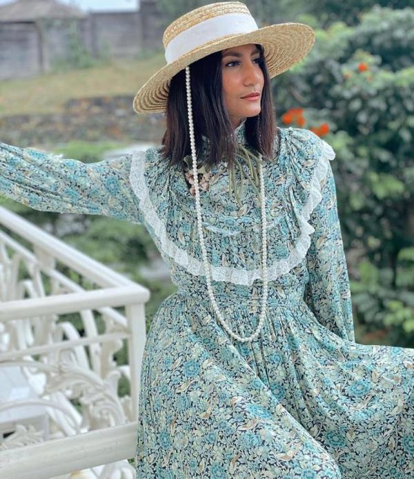 Terakhir, ada gaya feminin dari Natasha Dewanti saat mengenakan vintage dress bernuansa toska dan motif bunga-bunga. Penampilannya, semakin ‘vintage’ dengan classic boater hat di kepalanya. “Mamsar penampilannya kayak wanita Belanda,” kata netizen. “Kayak nonih Belanda nih,” komentar lainnya.