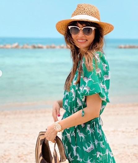 Saat berlibur, Bianca terlihat sangat berbeda dari biasanya. Salah satunya bisa dilihat di potret ini. Dia mengenakan long dress leisure berwarna hijau dan dia padukan dengan topi dan hand bag yang besar. Kacamata hitam jangan sampai ketinggalan, ya.
