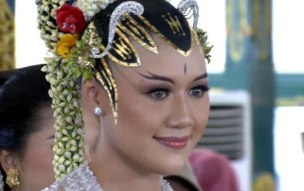 Di bagian riasan make-up, Erina fokus di area mata. Kemudian untuk bagian lipstik, menggunakan warna nude. Dia juga memakai alis menjangan khas Jogja.