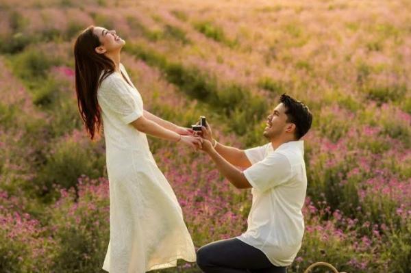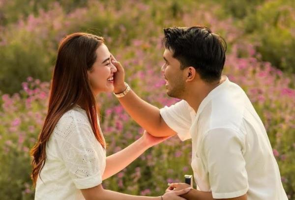 Perempuan 22 tahun itu sempat menangis terharu sekaligus bahagia ketika melihat sang kekasih berlutut di hadapannya. Thariq dengan sigap membantu menghapus air mata Aaliyah Massaid. Momen romantis tersebut berhasil diabadikan dalam sebuah foto.