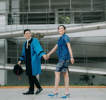 Satu lagi potrer Azriel di momen wisudanya saat berpose bersama kekasih, Sarah Menzel. Sarah hadir langsung di perayaan wisuda Azriel dan tampil cantik dengan kebaya berwarna biru.