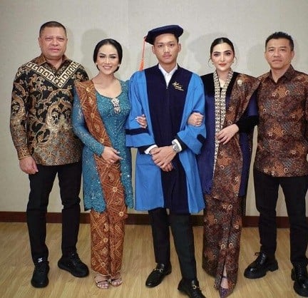 Kehadiran Krisdayanti dan Ashanty di hari bahagianya juga menambah kehangatan di momen wisuda Azriel. KD dan Ashanty kompak mengenakan kebaya dan berfoto di samping sang putra. Senyum kebahagiaan pun terpancar di wajah mereka.