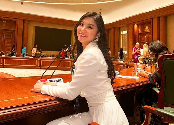 Dalam unggahan ini Audrey duduk di Ruang KTT Bharat Mandapam G20 yang biasanya dipakai untuk pertemuan para pemimpin negara-negara G20. Dia berpose duduk manis sembari memamerkan name tag kontestan Miss World 2024. Audrey pun mengaku belajar banyak hal dari para kontestan lain yang juga peduli pada isu kesehatan dunia.