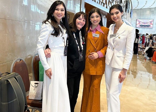 Audrey menyempatkan diri untuk mengabadikan momen dengan kontestan lainnya. Tak cuma itu, dalam foto tersebut Audrey bersebelahan dengan chairwoman dari Organisasi Misa World yaitu Julia Morley.