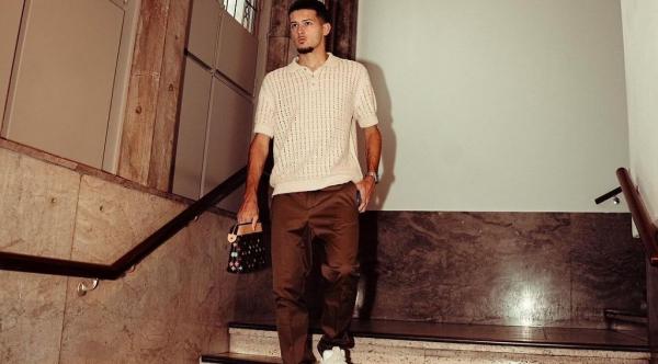 Potret Justin Hubner tampil dengan gaya cowok bumi, dia memakai polo shirt warna krem dipadukan dengan celana coklat. Gayanya makin kece dengan handbag dan sneakers. Gaya keren Justin sukses bikin salah fokus.