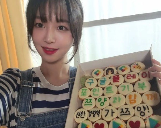 Terbiasa dengan konten makanan, membuat Tzuyang pasti banyak foto dengan makanan dan di sini ia foto bareng cupcakes. Lucunya, kue manis kecil-kecil itu memiliki simbol dan tulisan di atas sebagai topping. Lewat keterangan foto, Tzuyang coba menyampaikan rasa bahagianya bisa terlihat dalam proyek bersama Google Play.