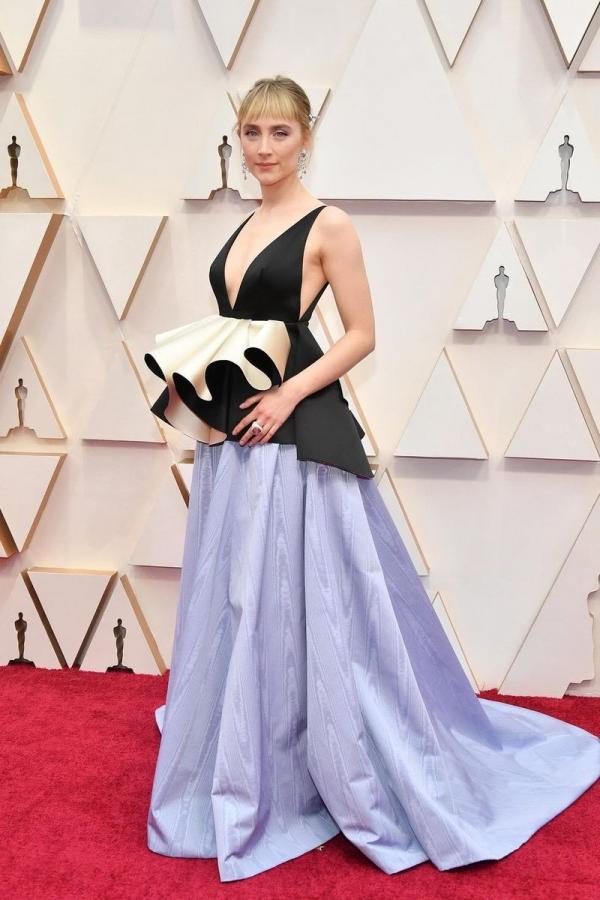 Selanjutnya ada Saoirse Ronan yang menjadi nominasi di kategori Aktris Terbaik (yang dimenangkan oleh Renée Kathleen Zellweger). Di ajang itu, dia memilih salah satu gaun Gucci dengan paduan warna hitam-emas dan violet. Gaun plum dengan warna yang kontras tersebut dinilai kurang serasi. Namun, apapun yang dikenakannya, Saoirse masih tetap anggun!