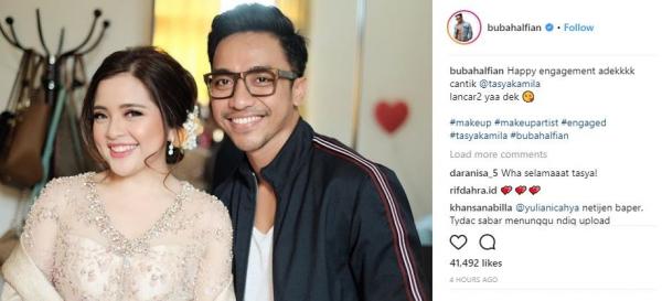 Sementara itu, Bubah Alfian sebagai make-up artist acara pertunangan Tasya pun memberikan ucapan selamat kepadanya.
